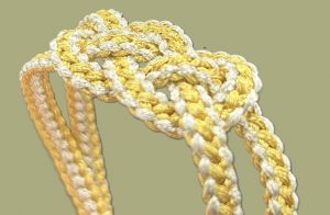 金糸と銀糸を使って御岳組で45cm程度組み、あわじ結びの